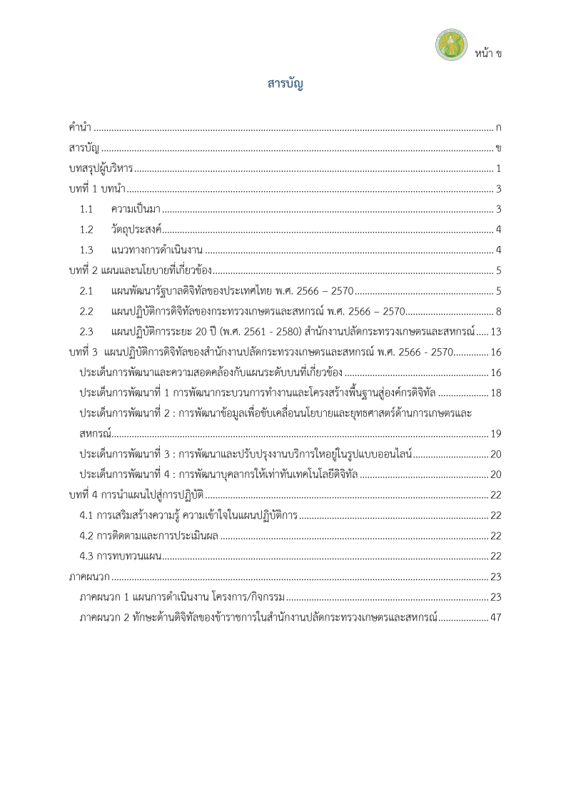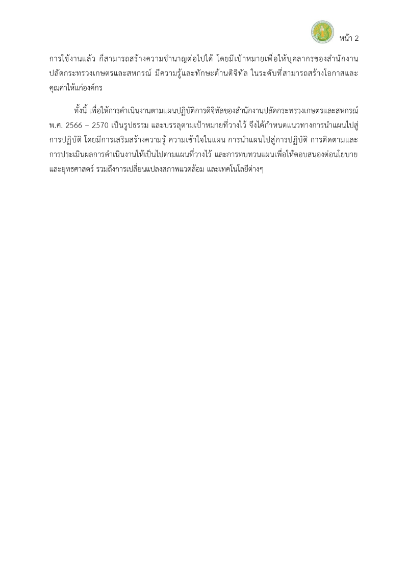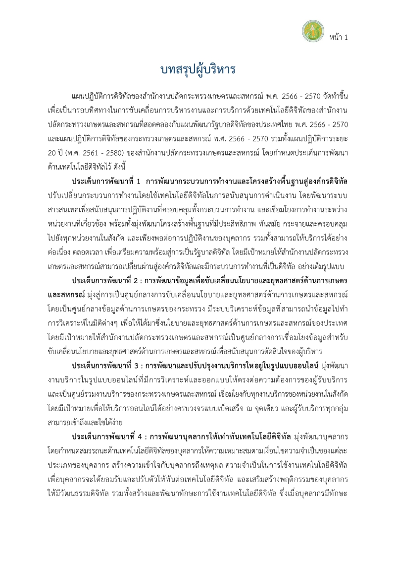 ด้วยสำนักงานปลัดกระทรวงเกษตรและสหกรณ์ ได้เห็นชอบแผนปฏิบัติการดิจิทัลของสำนักงานปลัดกระทรวงเกษตรและสหกรณ์ พ.ศ. 2566-2570 เพื่อใช้เป็นกรอบแนวทางในการขับเคลื่อนการบริหารงานและการบริการด้วยเทคโนโลยีดิจิทัลของสำนักงานปลัดกระทรวงเกษตรและสหกรณ์ โดยกำหนดประเด็นการพัฒนา ดังนี้