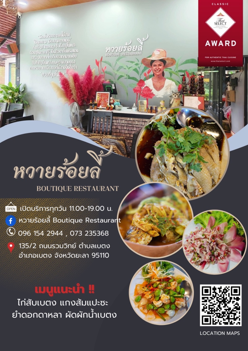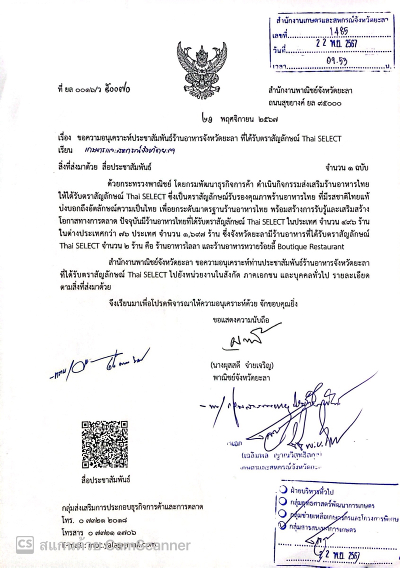 ประชาสัมพันธ์ร้านอาหารจังหวัดยะลาที่ได้รับตราสัญลักษณ์ Thai SELECT