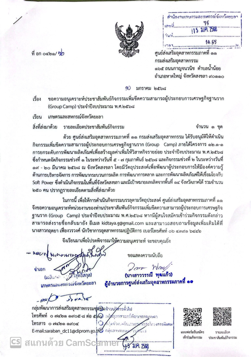 ประชาสัมพันธ์กิจกรรมเพิ่มขีดความสามารถผู้ประกอบการเศรษฐกิจฐานราก (Group Camp) ประจำปีงบประมาณ พ.ศ. 2568