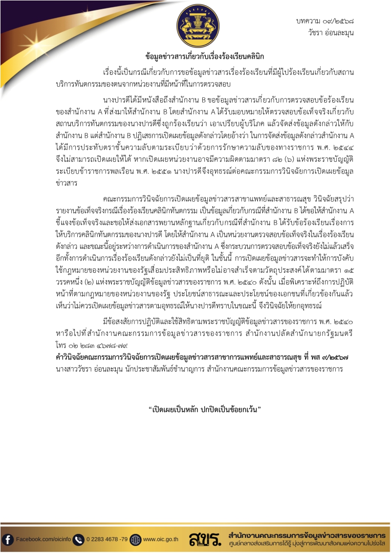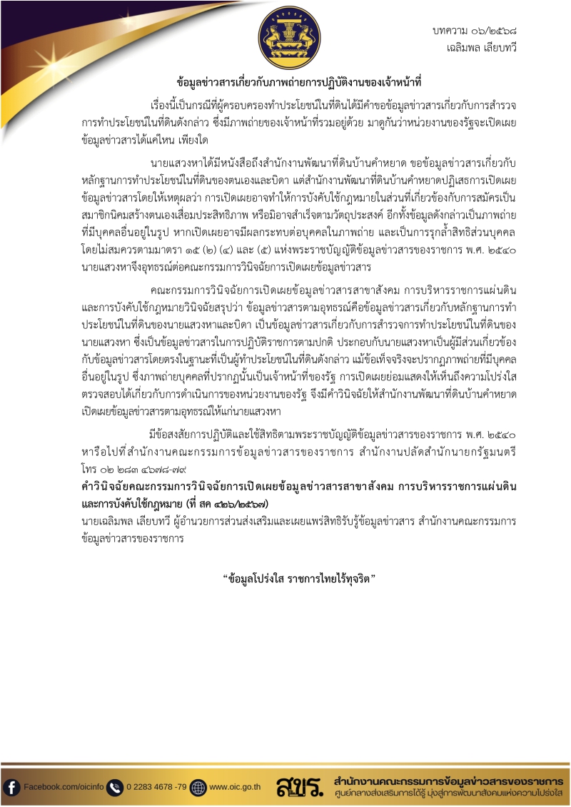 บทความเผยแพร่ความรู้เกี่ยวกับ พรบ. ข้อมูลข่าวสารฯ ประจำเดือนกุมภาพันธ์ 2568 จำนวน 5 เรื่อง