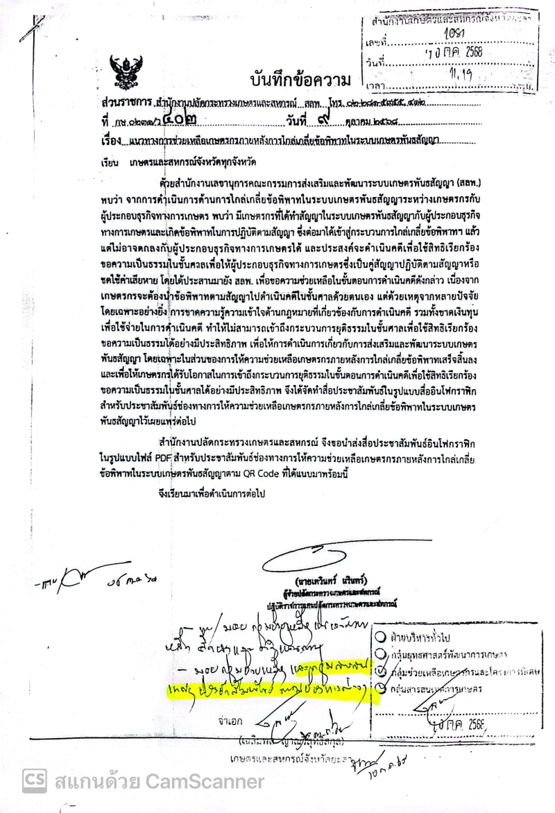 ช่องทางการให้ความช่วยเหลือเกษตรกรภายหลังการไกล่เกลี่ยข้อพิพาทในระบบเกษตรพันธะสัญญา