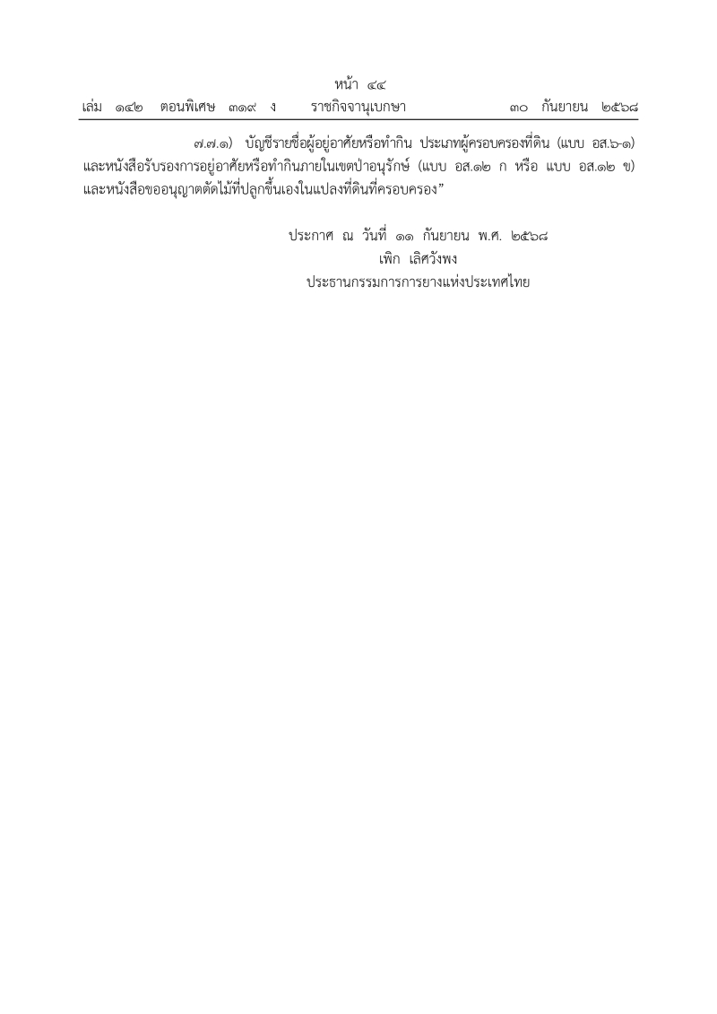 ประกาศคณะกรรมการการยางแห่งประเทศไทย เรื่อง แบบและวิธีการยื่นขอรับการส่งเสริมและสนับสนุนให้มีการปลูกแทน (ฉบับที่ 5) พ.ศ. 2568