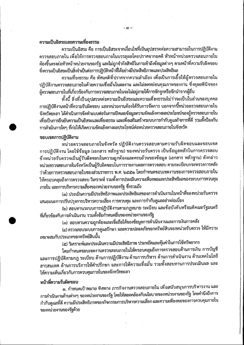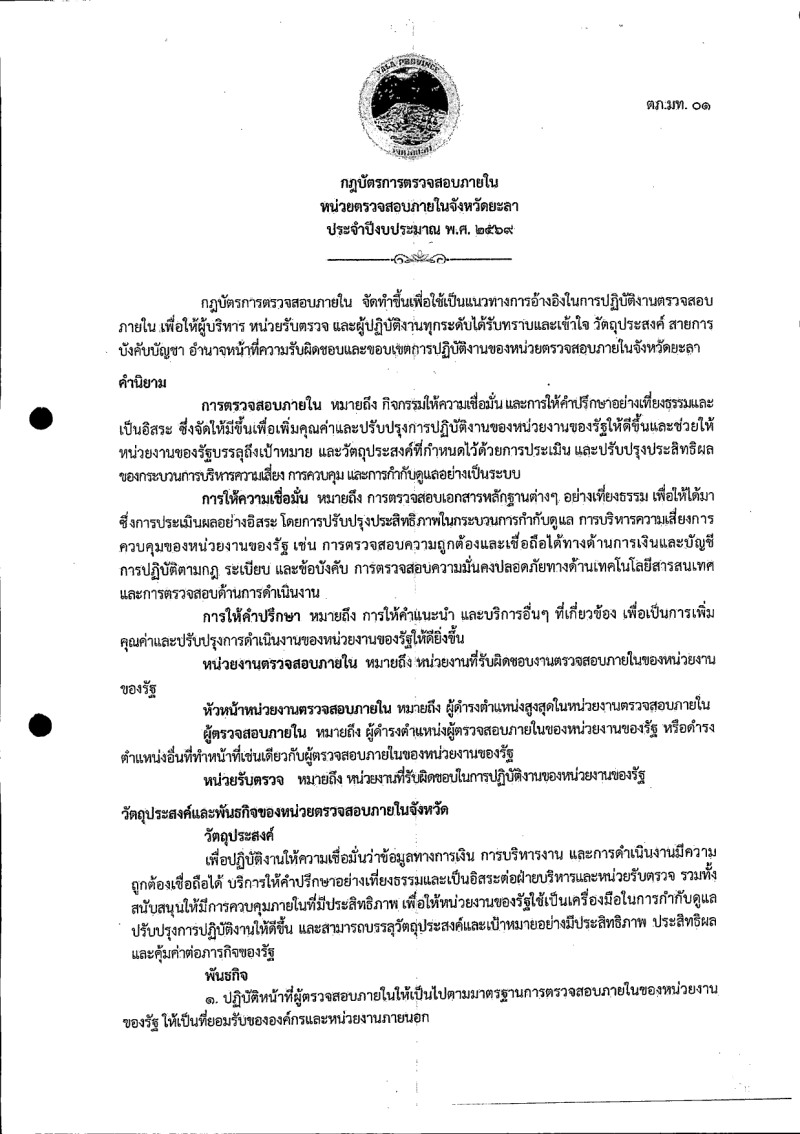 กฎบัตรการตรวจสอบภายในของหน่วยตรวจสอบภายในจังหวัดยะลา