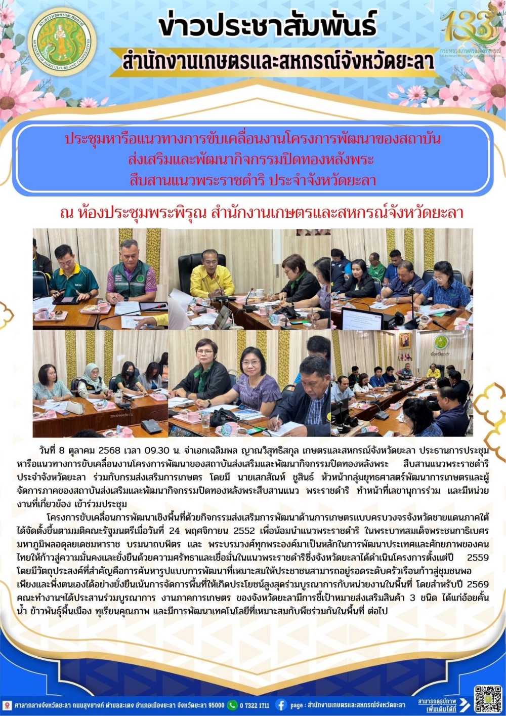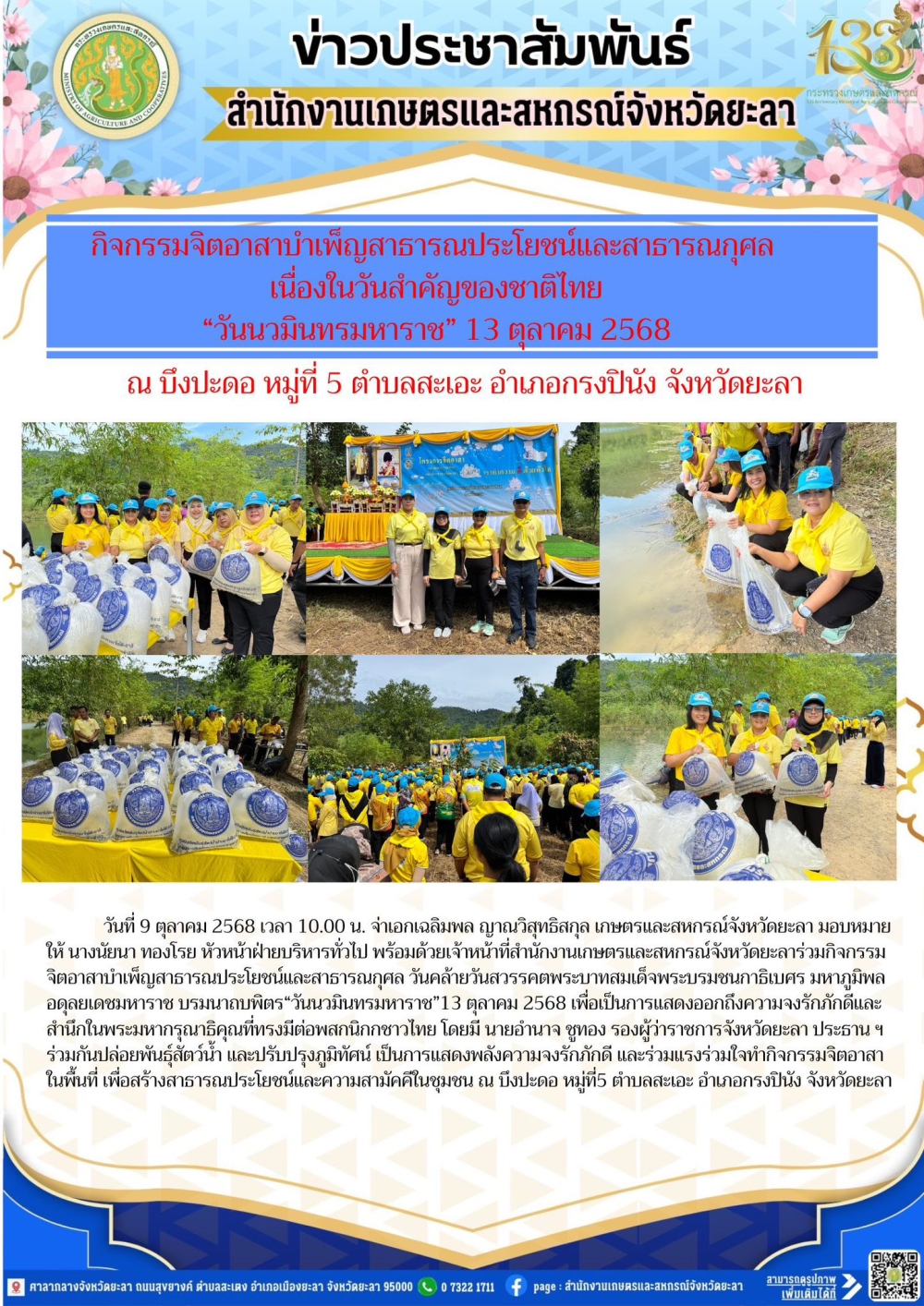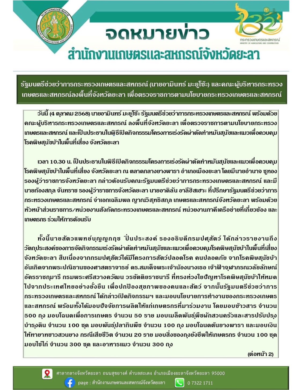 จดหมายข่าวประจำเดือนตุลาคม 2568 สำนักงานเกษตรและสหกรณ์จังหวัดยะลา
