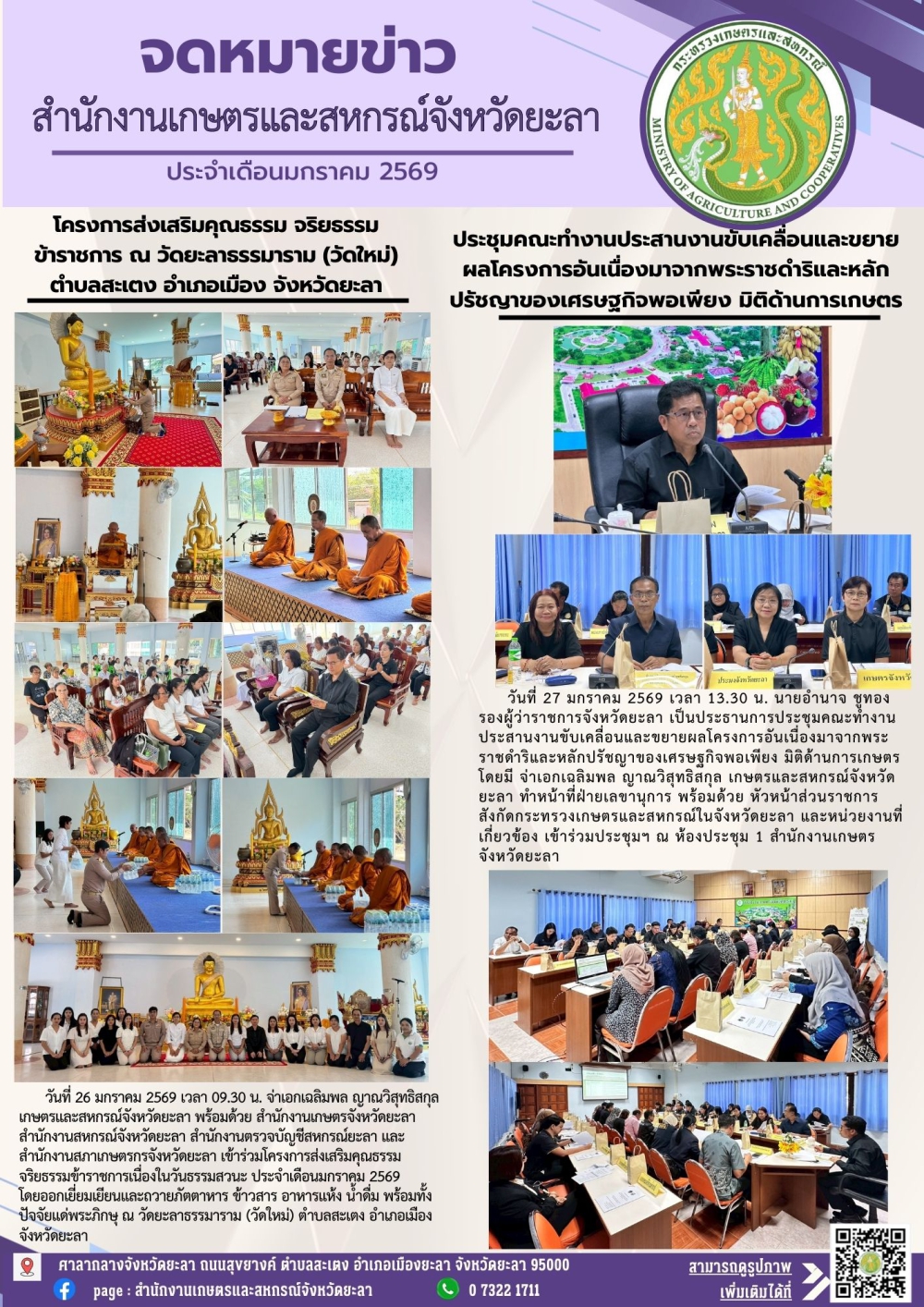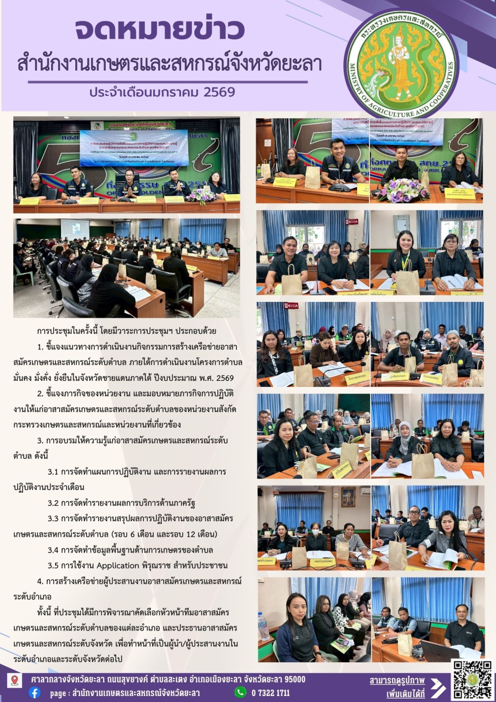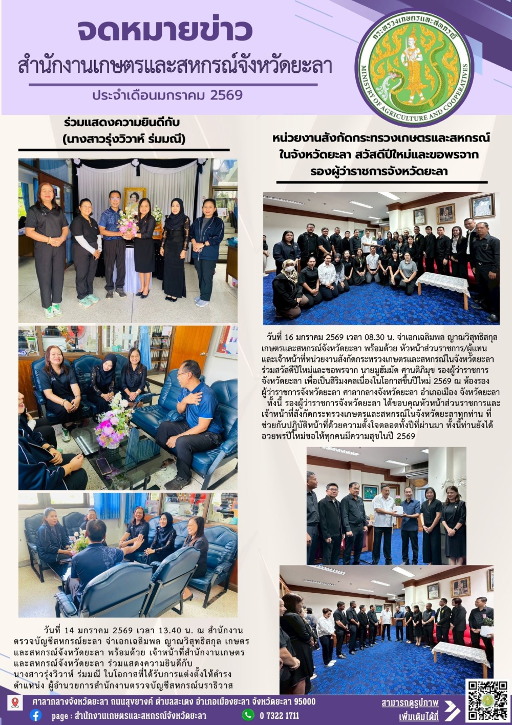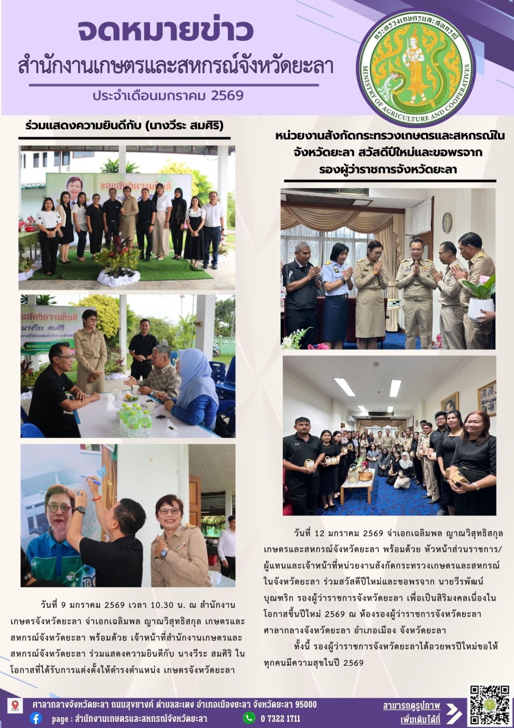 จดหมายข่าวประจำเดือนมกราคม 2569 สำนักงานเกษตรและสหกรณ์จังหวัดยะลา