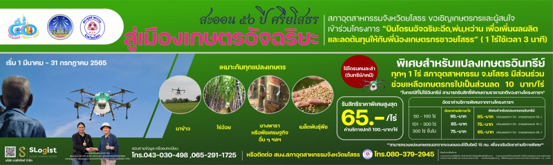สภาอุตสาหกรรมจังหวัดยโสธร ขอเชิญเกษตรกรและผู้สนใจ เข้าร่วมโครงการ "บินโดรนอัจฉริยะฉีด, พ้น, หว่าน เพื่อเพิ่มผลผลิตและลดต้นทุนให้กับพี่น้องเกษตรกรชาวยโสธร" (1 ไร่ ใช้เวลา 3 นาที)