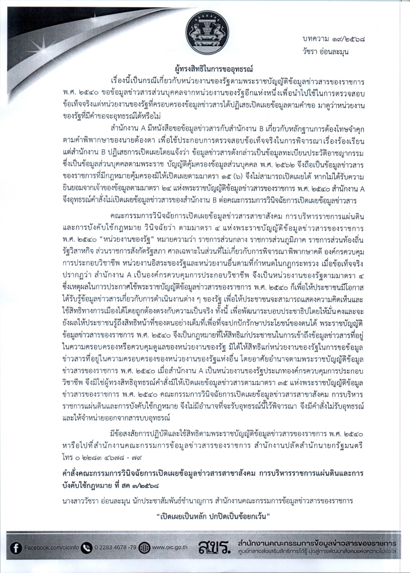 พระราชบัญญัติข้อมูลข่าวสารของราชการ พ.ศ. 2540 การเผยแพร่ความรู้เกี่ยวกับพระราชบัญญัติข้อมูลข่าวสารของราชการ พ.ศ. 2540 (เมษายน 2568)