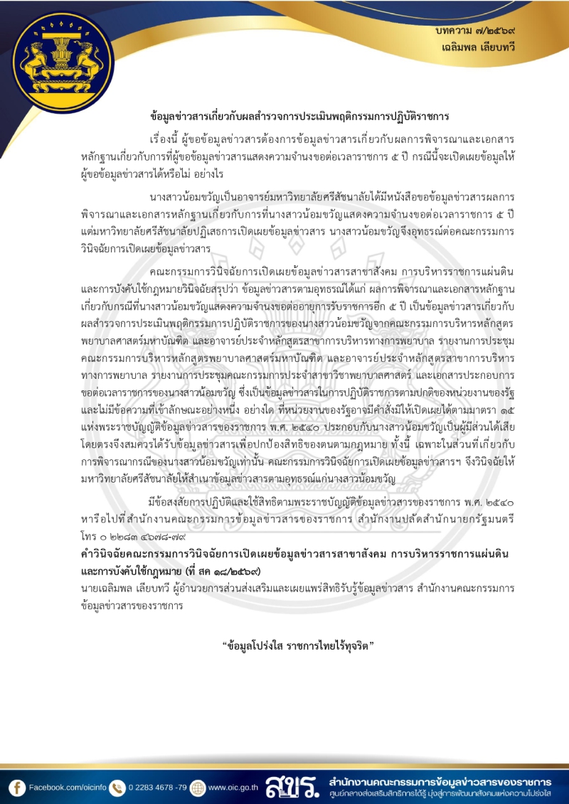 ความรู้เกี่ยวกับพระราชบัญญัติข้อมูลข่าวสารของทางราชการ พ.ศ. 2540