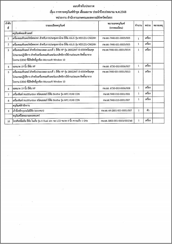 ประกาศจังหวัดยโสธร เรื่อง ครุภัณฑ์เสื่อมสภาพ โดยวิธีเฉพาะเจาะจง