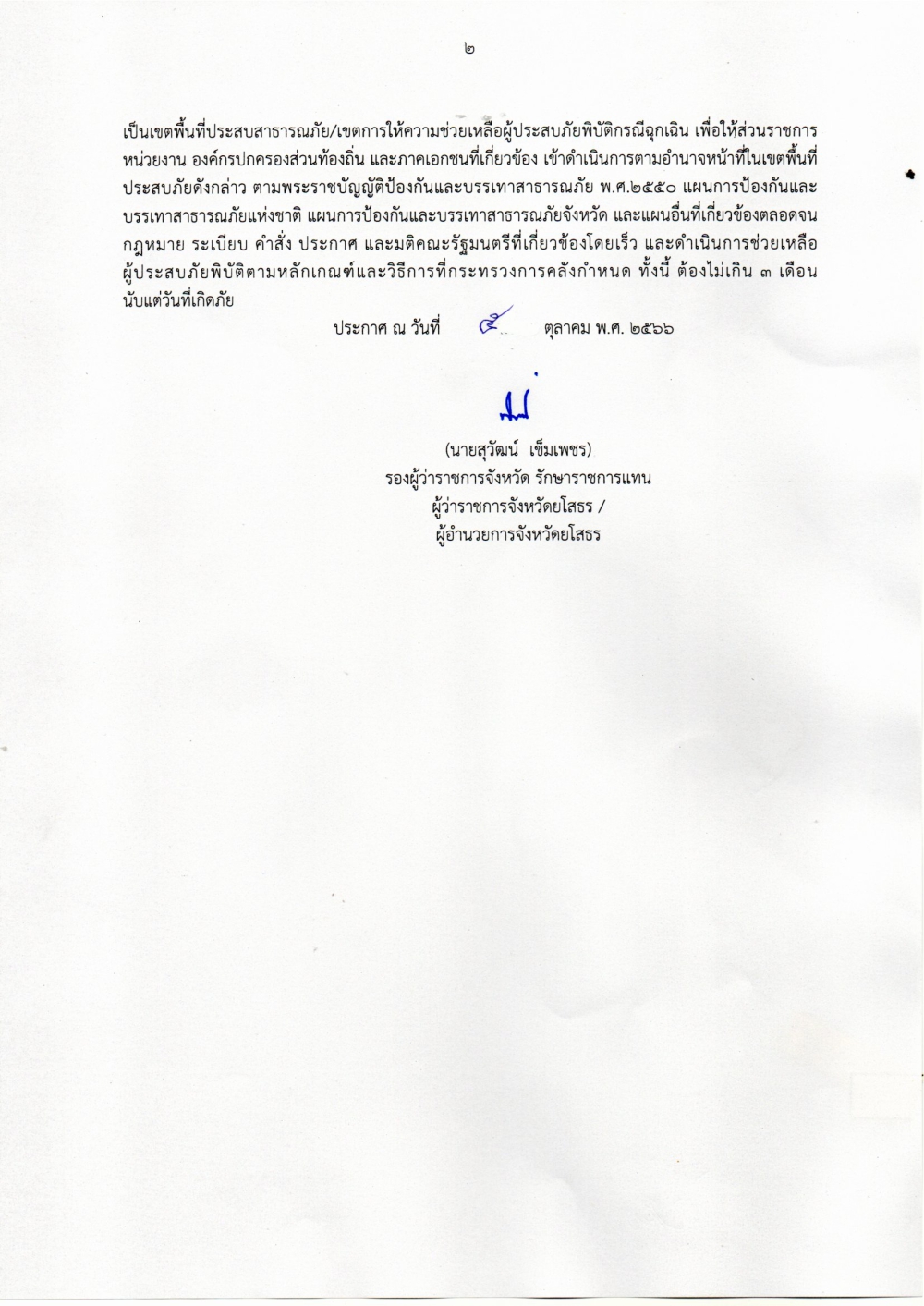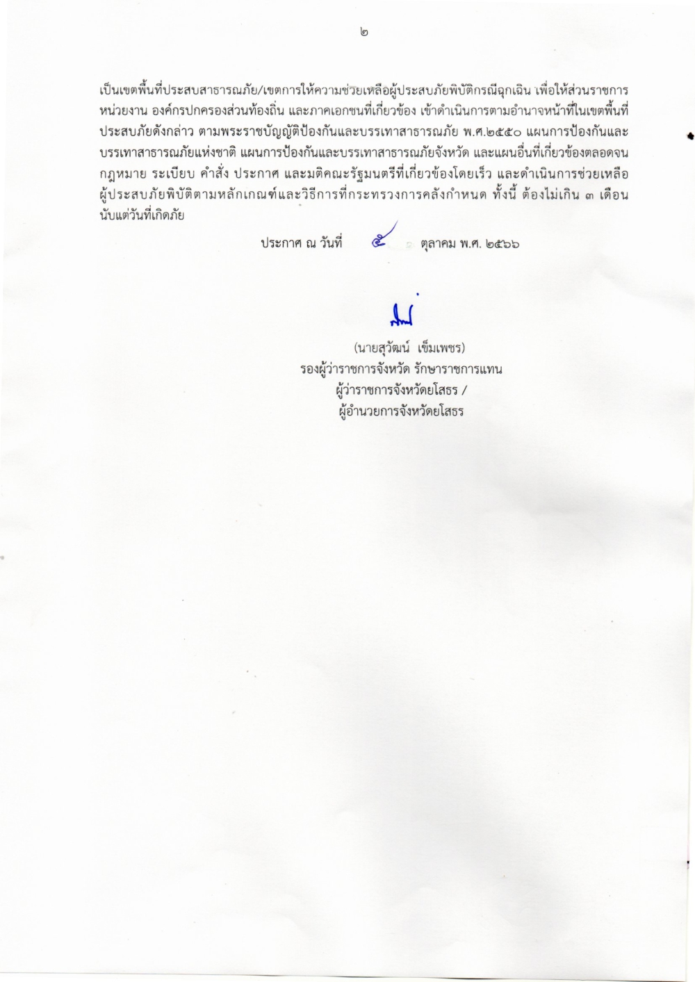 ประกาศจังหวัด เรื่อง เขตพื้นที่ประสบสาธารณะภัย เขตการให้ความช่วยเหลือผู้ประสบภัยพิบัติก