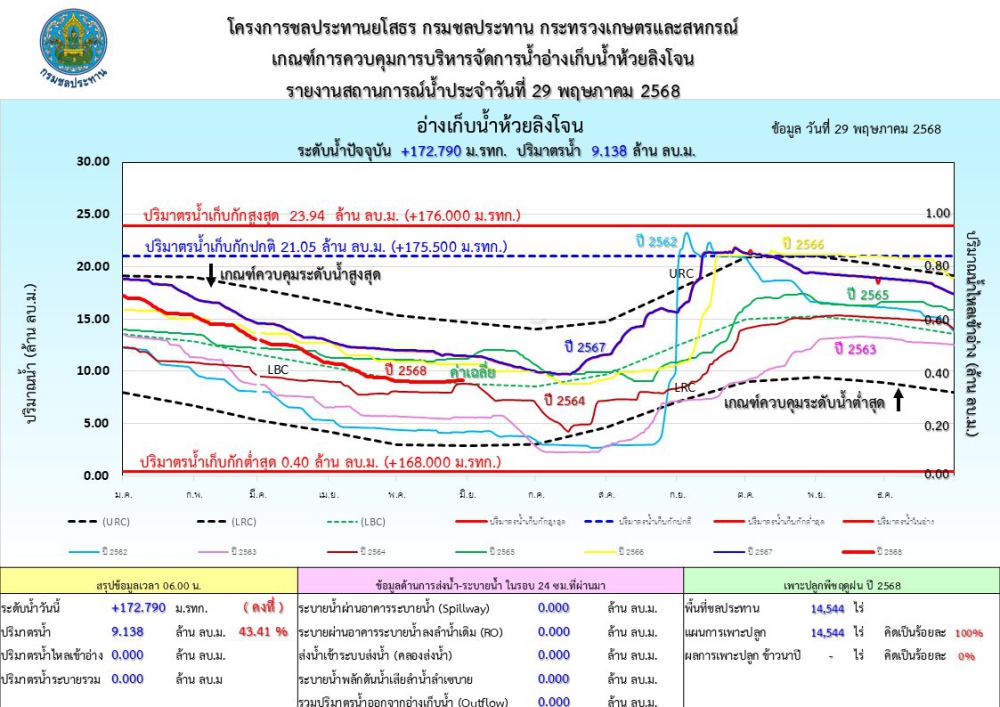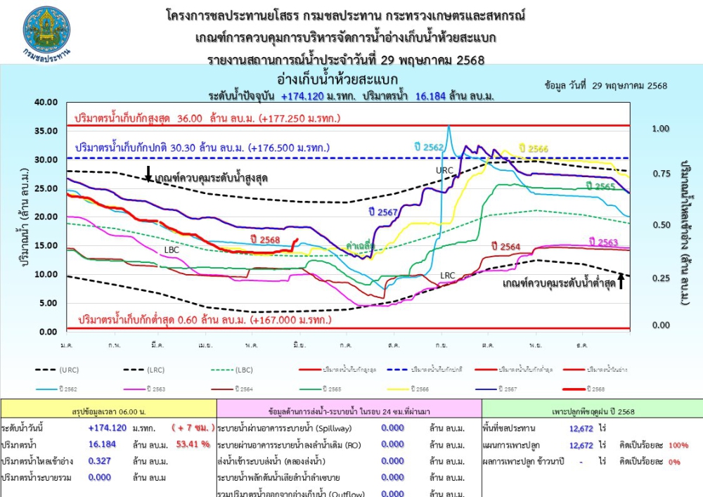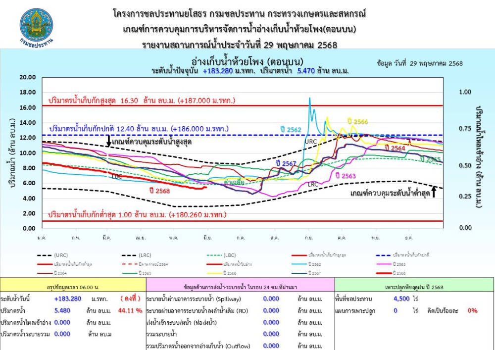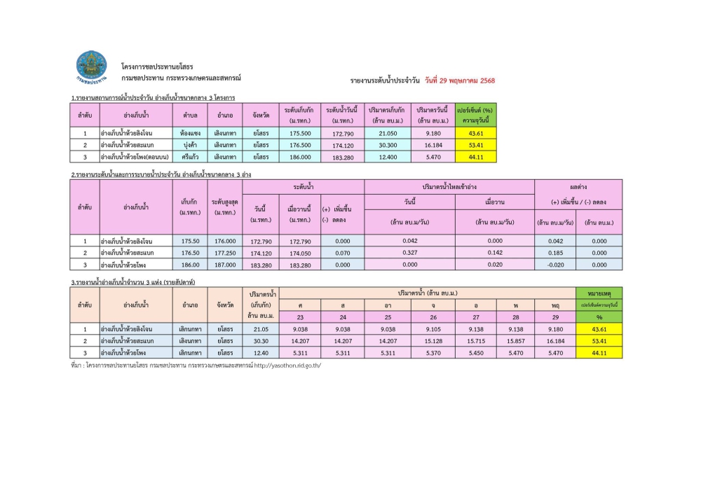 รายงานสถานการณ์น้ำจังหวัดยโสธร ประจำวันที่ 29 พฤษภาคม 2568